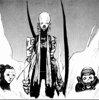 1) Nous n'utiliserons pas systématiquement dans cet article les termes de la traduction française, parfois confuse, du manga. Ainsi par exemple la « Netsphere » est devenue la « Résosphère », ou encore l’arme de Killy s’est transformée en « Pistolet Positronique » ( !) alors qu’il s’agit d’un « Emetteur de Faisceau Gravitationnel ».